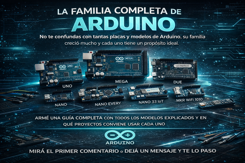 ◆ Guía Técnica · Arduino Ecosystem La Familia Completa de Arduino Todas las familias y modelos de Arduino: UNO, Nano, Mega, Leonardo, MKR, Portenta, Nicla y Opta — con specs completos, diferencias reales y guía de selección. ◆ Actualizado 2025 ◆ 7 familias cubiertas ◆ Tabla comparativa completa ◆ Guía de selección Arduino nació […]