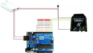 El diagrama de conexionado en muy simple, si tiene una pawer bank para cargar celulares recuernden que estas trabajan a 5 voltios y el módulo wifi trabaja con una tensión de 3.3 voltios, si bien el arduino tiene una salida de 3.3 voltios a veces no es suficiente la corriente como para hacer arrancar al módulo wifi y peuden presentarse problemas es por eso que recomiendo el uso de un módulo regulador de tensión aparte.