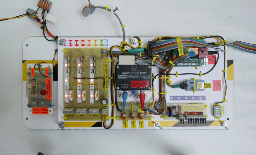 El cerebro de Wasserorgel era un Arduino MEGA 2560, apilado con un Adafruit Music Maker Shield. El sintetizador MIDI del escudo generó los sonidos del instrumento en base a la entrada proveniente de un teclado auto-construido, impreso en 3D. El teclado fue diseñado lo suficientemente sólido como para resistir el clima y el entusiasmo equivocado de los borrachos a las 3 en punto de la noche. El programa en el Arduino tradujo las pulsaciones en efectos de luz y agua al cambiar los LED RGB de 12 V a través de transistores Darlington y los ocho pulverizadores de presión a través de relés de estado sólido. Cinco de las fuentes del rociador a presión se instalaron en la parte superior de la cuenca principal, una se instaló en la parte superior de una fuente existente y dos se instalaron en el techo del edificio Kronenplatz.
