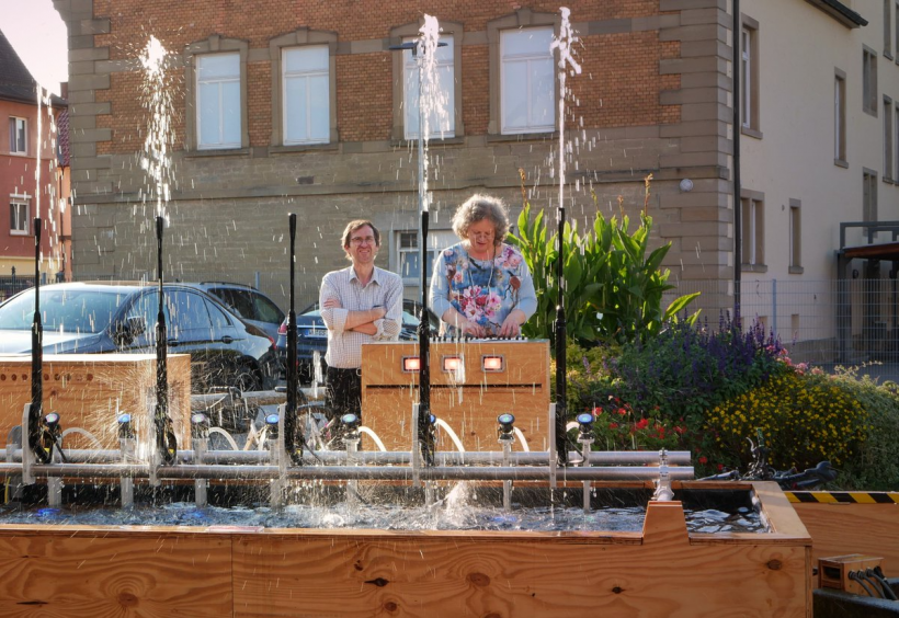 Con el respaldo de esta compañía, Roy armó una fuente musical de agua alimentada por ocho lavadoras a presión, denominándola “Wasserorgel von Winnenden”, o “Water Organ of Winnenden”, la ubicación de la sede de Kärcher.
