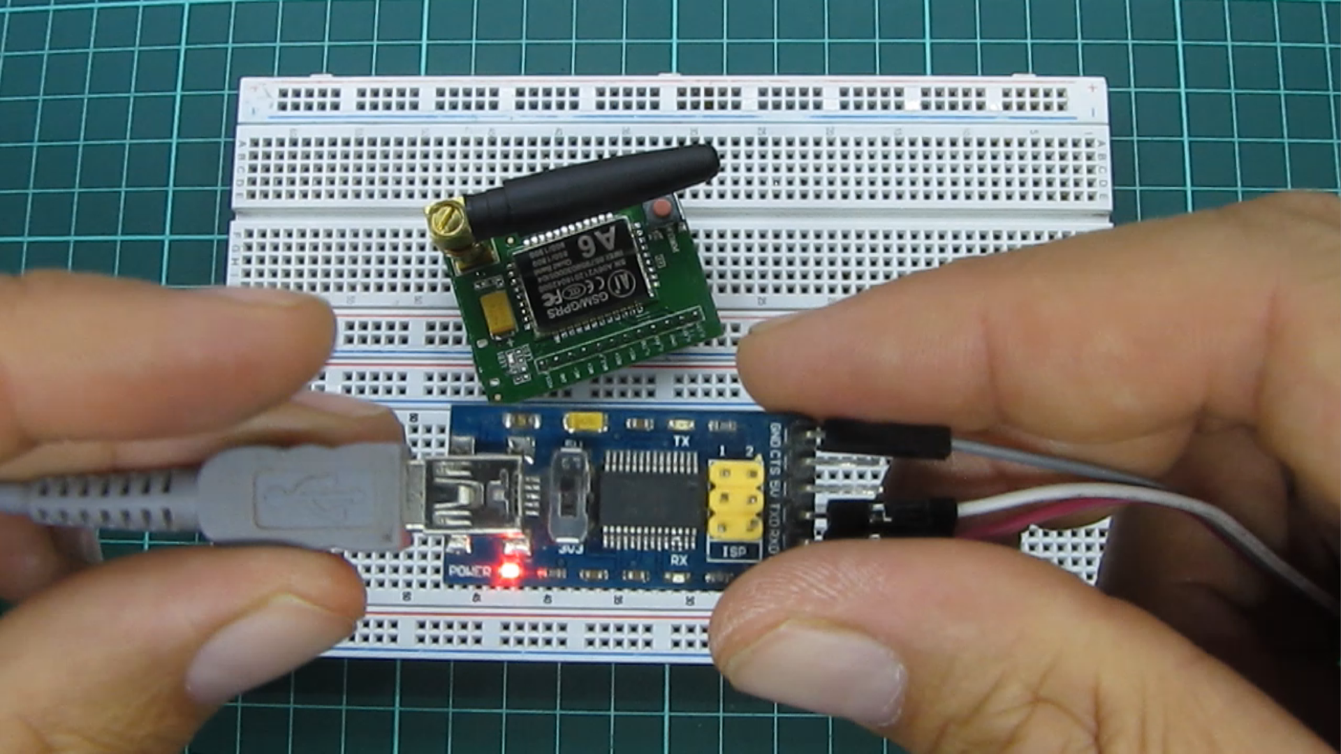 Para interactuar con nuestra pc y el módulo gsm A6, recomiendo usar un adaptador usb serie, e ir probando distintos comandos AT y de esta forma familiarizarnos con el módulo