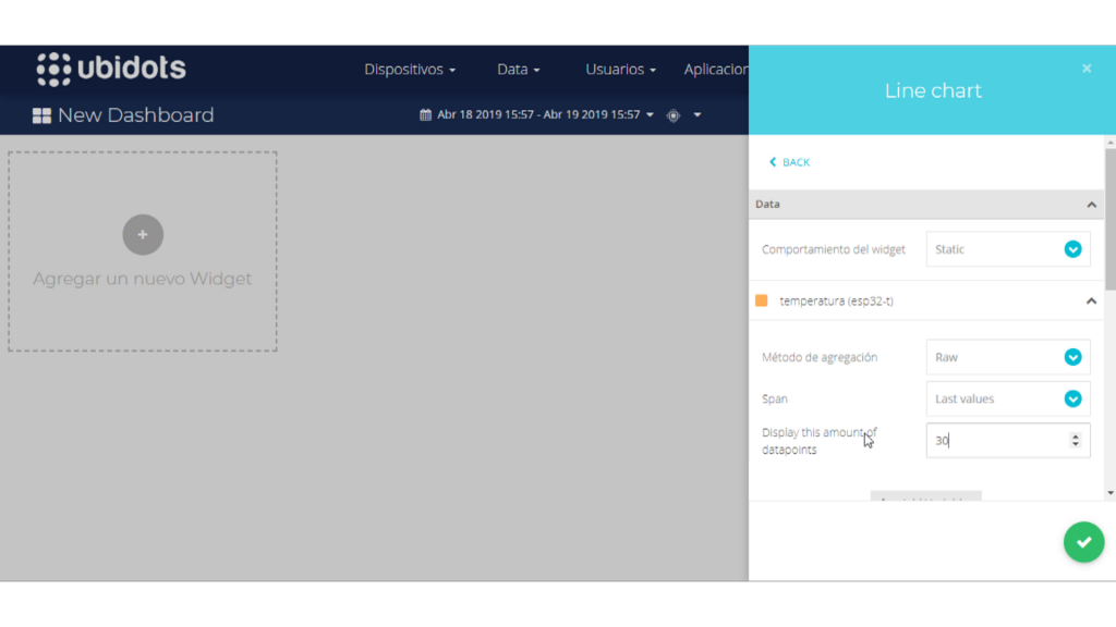 En “Span” elegiremos “Last Values” y colocamos 30.