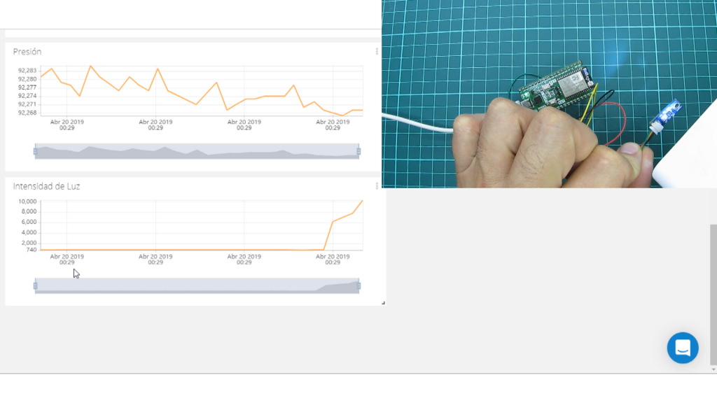 Si aplicamos luz al sensor veremos que las métricas del sensor se disparan muy alto.
