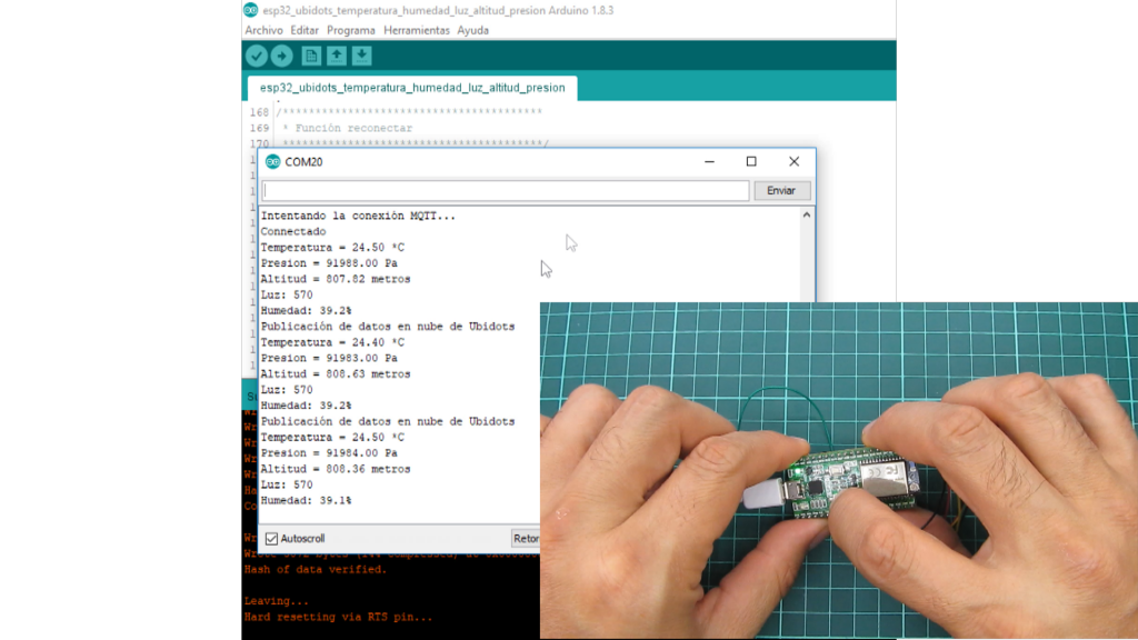Reseteamos el módulo. Y observamos en el terminal serial, que se están subiendo los datos a ubidots.
