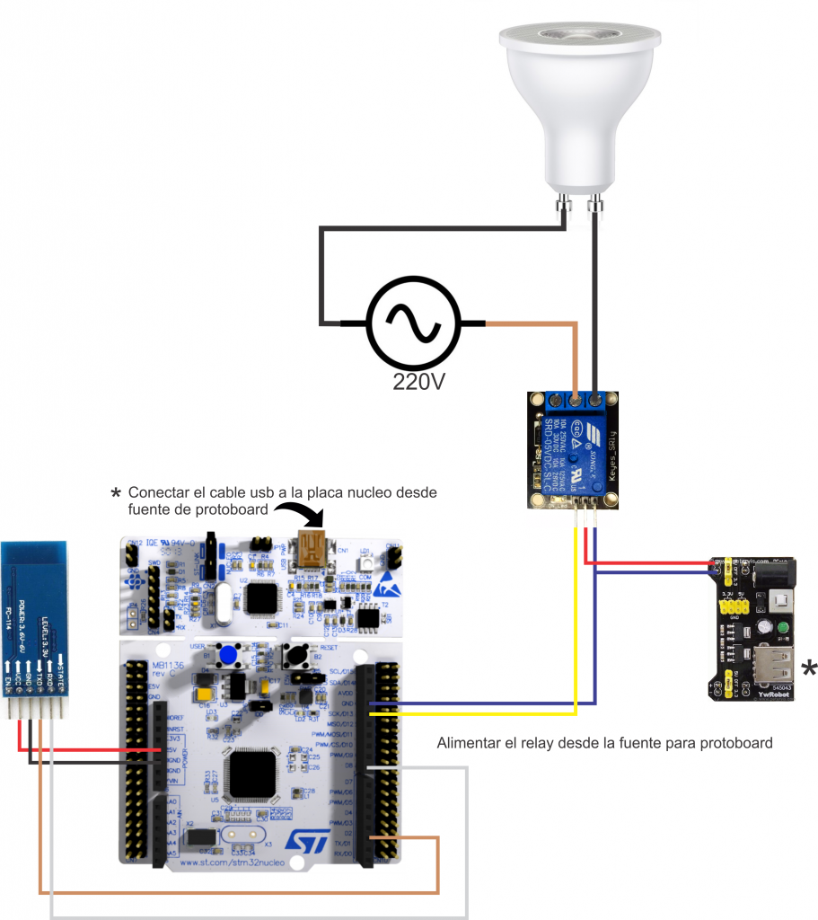 También se va a utilizar un módulo relay como etapa de potencia para encender el foco y aislar el circuito de los 220 voltios.