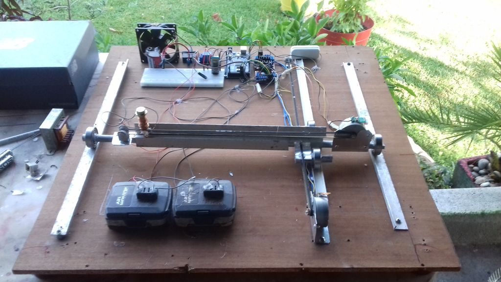 El sistema utiliza una aplicación de control de voz Arduino basada en Android para recibir comandos, y pasa esta información al Arduino Mega oculto debajo de la placa a través de un módulo Bluetooth HC-05. Luego controla un par de motores paso a paso para mover un electroimán en su lugar, que empuja las piezas a través de la rejilla como por arte de magia.