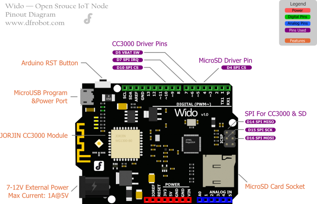 • WIFi y MicroSD controlados por puerto SPI