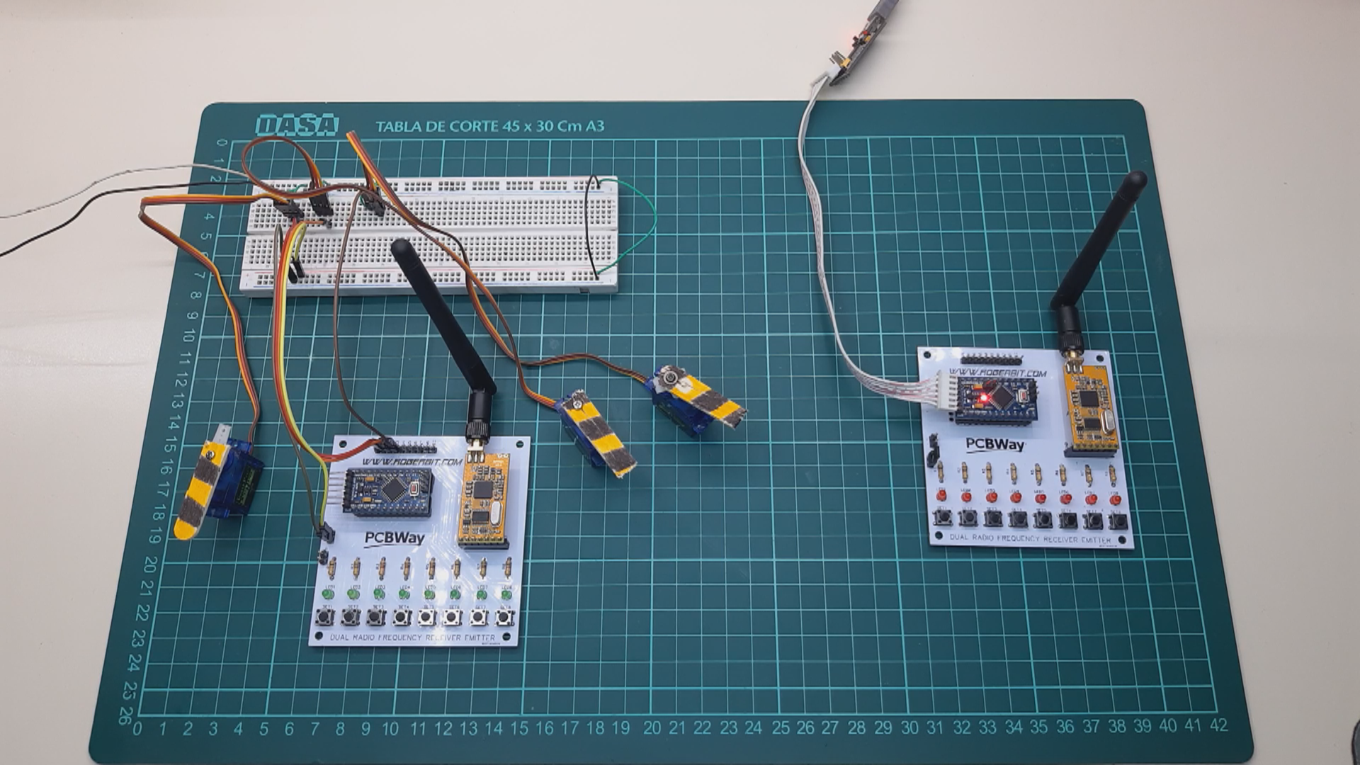 En este tutorial veremos como controlar hasta ocho servo motores con módulos APC-220 y arduino mini pro. Armaremos el circuito, analizaremos dos códigos fuentes, tanto para el emisor como el receptor, f […]